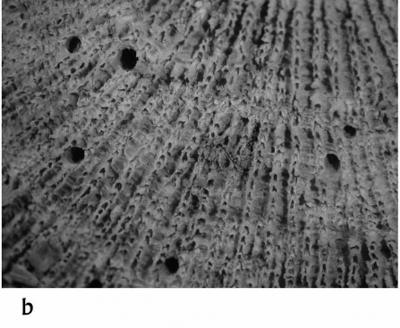| Abstract | Abundant worm borings were found in some brachiopod shells (Clitambonites, Estlandia, Nicolella) from the Ordovician (Caradoc) oil shale in North Estonia. 9 of 21 brachiopod genera (43 %) have been bored. Excluding the size and thickness of valves, no common morphological feature discriminates the brachiopods with borings from those without them. The Trypanites are host-specific, and the frequency of bored valves varies from 6.5 % in Bekkerina to 51 % in Estlandia. The worm larvae preferred hosts with thick lamellose shells, such as those of the clitambonitids, especially Clitambonites schmidti. The boring organisms were size-selective; they preferred large adult specimens. The majority of the borings are oriented, and living hosts were preferred to dead shells. Some clitambonitidine brachiopods, like C. schmidti tolerated a large number of the borer's shafts in their valves. Few bored valves have the blister-like shell-repair structures in their interior. |